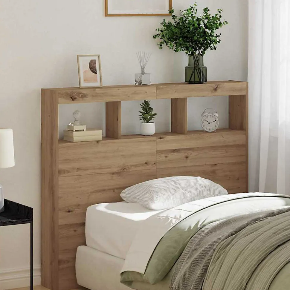 La tête de lit en chêne artisanal ajoute du peps à ta chambre tout en offrant des rangements pratiques pour garder ton espace stylé et bien organisé.