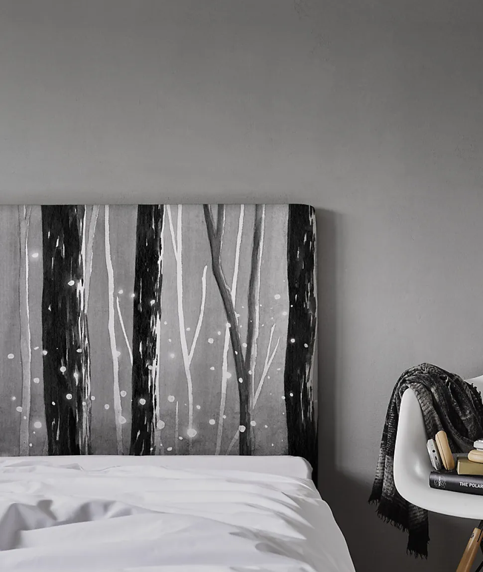 Plongez dans la forêt mystérieuse imaginée par l’artiste Mlle Terite et laissez-vous porter par l’ambiance de cette balade en plein coeur des bois, rythmée par le bal des lucioles.CARACTERISTIQUES :Disponible en 3 dimensions (cm) : 140 – 160 – 180Hauteur : 110 cmÉpaisseur : 8 cmDesign : Lucioles – Mlle TeriteColoris disponibles : Noir – Bleu – VertFabrication : France (housse) et Belgique (structure) Livrée houssée à platCOMPOSITION :Structure : Epicéa + ContreplaquéHousse : Tissu polyester 228 gr/m² confectionné dans les VosgesGarnissage : 2 cm de mousse polyuréthane 17 kg/m³ + 2 cm de ouate polyester 200 gr/m²Fond : Tissu non tissé 70 gr/m²POINTS FORTS :Design unique :- Création originale par un artiste pour une touche authentique- Valorisation du savoir-faire artistique français- Idéal pour une décoration raffinée et personnaliséeHousse Made in France :- Qualité supérieure et respect de normes strictes- Production éthique (10% de chaque vente sont reversés à l’artiste qui en a imaginé le design)Confort et praticité :- Housse amovible pour un entretien facile (60°C en machine) et la possibilité de changer de style- Épaisseur de 8 cm pour un bon équilibre entre confort et esthétique- Hauteur de 110 cm adaptée pour un effet élégant et un bon maintien du dosInstallation facile :- Pose directement au sol, entre le mur et votre lit