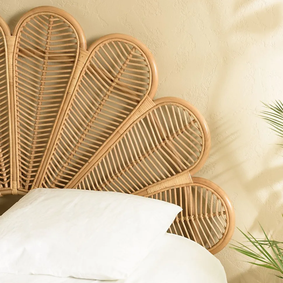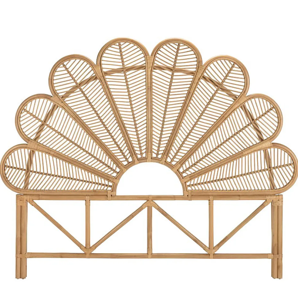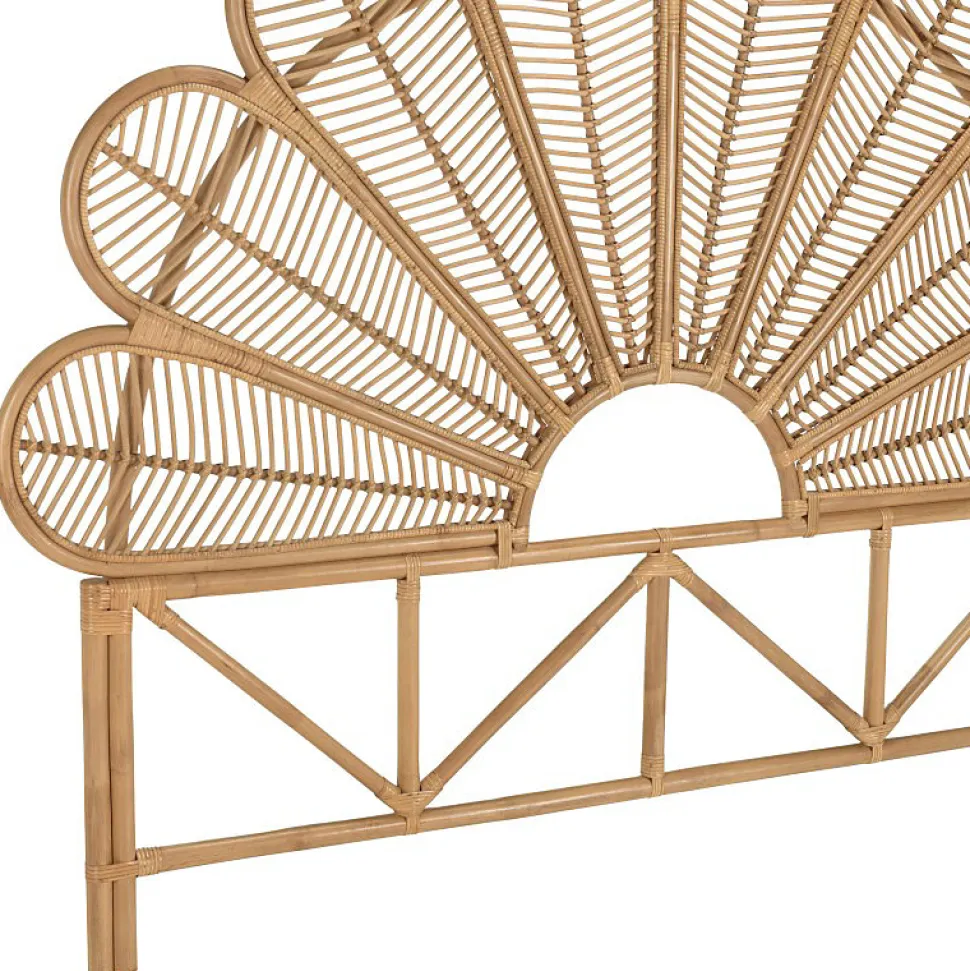 Tête de lit demi-lune 140/160cm ‘fleur’ rotin couleur brun miel. Article en rotin. Dimension 180 x 6 x 146 cm.