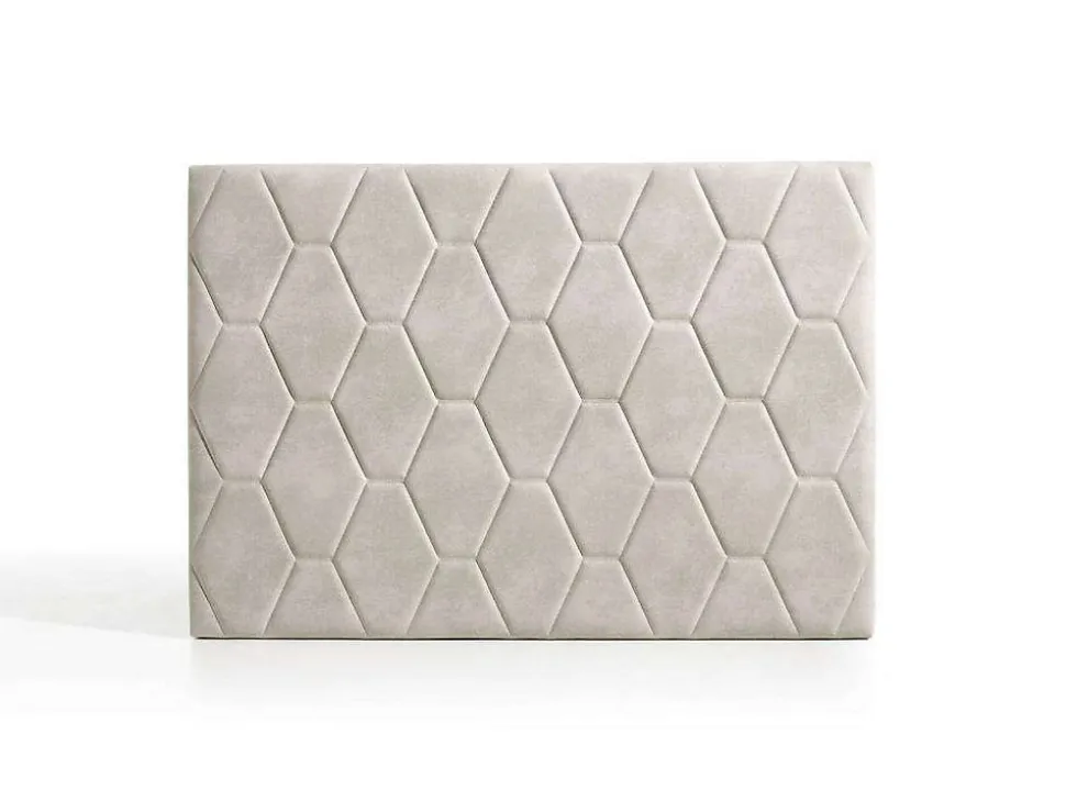 Tête de lit en tissu gris et blanc, fabriquée à la main en Espagne. Avec son design scandinave et sa technologie Aquaclean, elle est facile à entretenir. Ses dimensions de 154x115x8 cm et son style moderne apportent une touche élégante à votre chambre tout en protégeant votre literie.
