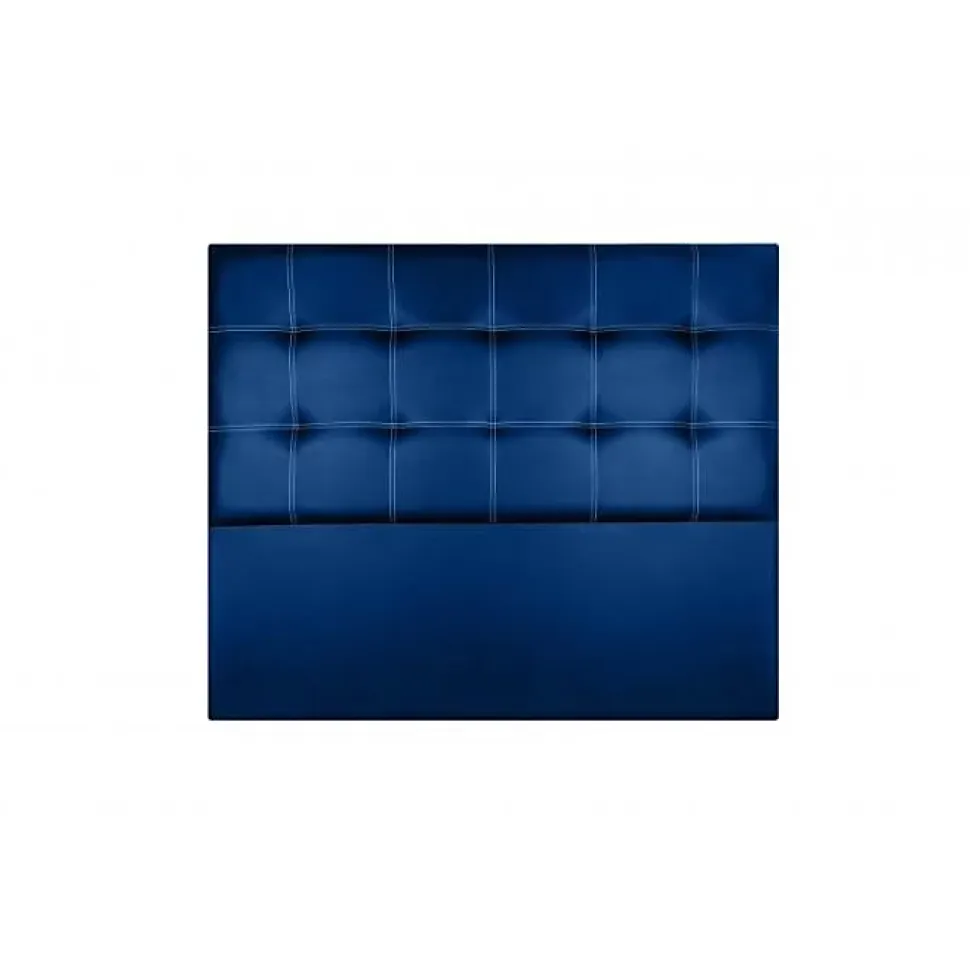 Tête de lit Iris en similicuir bleu de 115 cm, alliant élégance et confort. Fabriquée à la main avec un rembourrage en mousse HR, elle apporte une atmosphère chaleureuse à votre chambre. Durable grâce à sa structure en pin de Galice, elle inclut le matériel de montage. Garantie 2 ans. Fabriqué en Espagne.