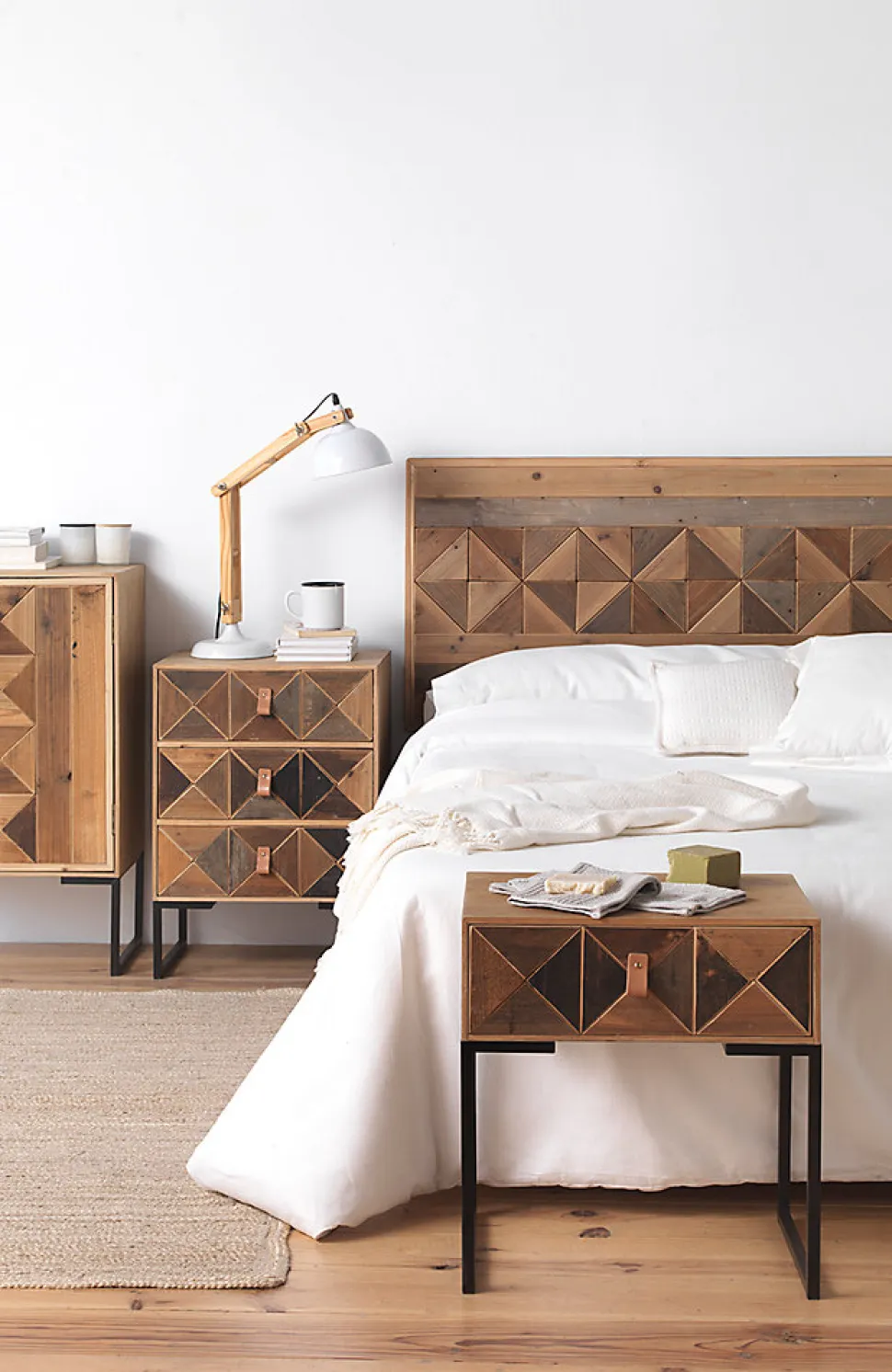 Votre chambre à coucher ne sera plus la même avec cette belle tête de lit, car son panneau au design géométrique en frêne recyclé de différentes teintes ne passera pas inaperçu. C’est certainement le meuble idéal si vous souhaitez donner un look différent à votre chambre à coucher.