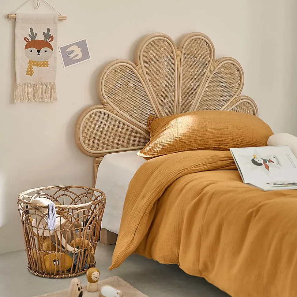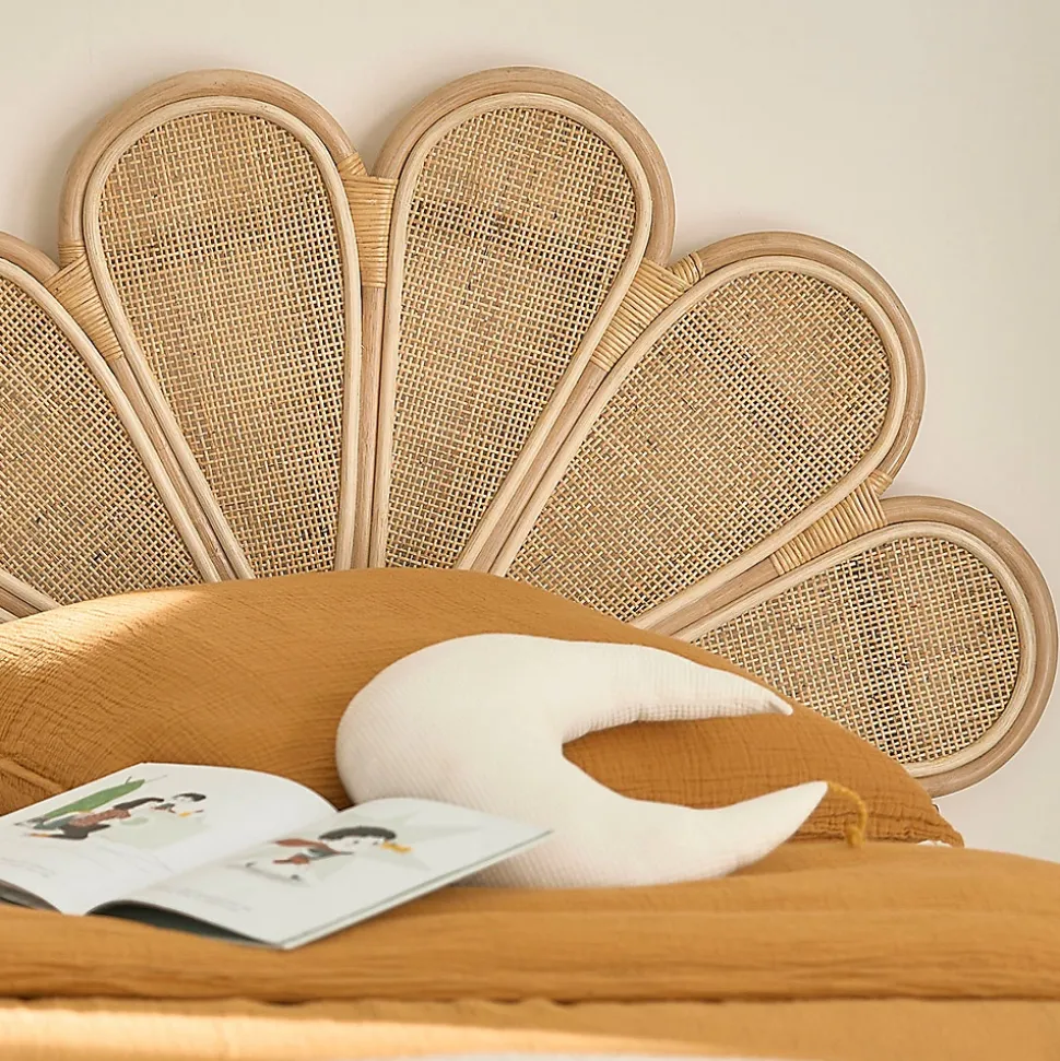 Inspirée par le style bohème, notre tête de lit en rotin et cannage 90 cm sera idéale dans la chambre de votre enfant. Cette tête de lit se glisse simplement entre le lit et le mur. Caractéristiques : Matière : Rotin – Couleur : Naturel – Hauteur : 101 cm – Longueur 115 cm – Profondeur : 6 cm – Poids : 4 kg – Garantie : 5 ans – Montage : Livrée montée.