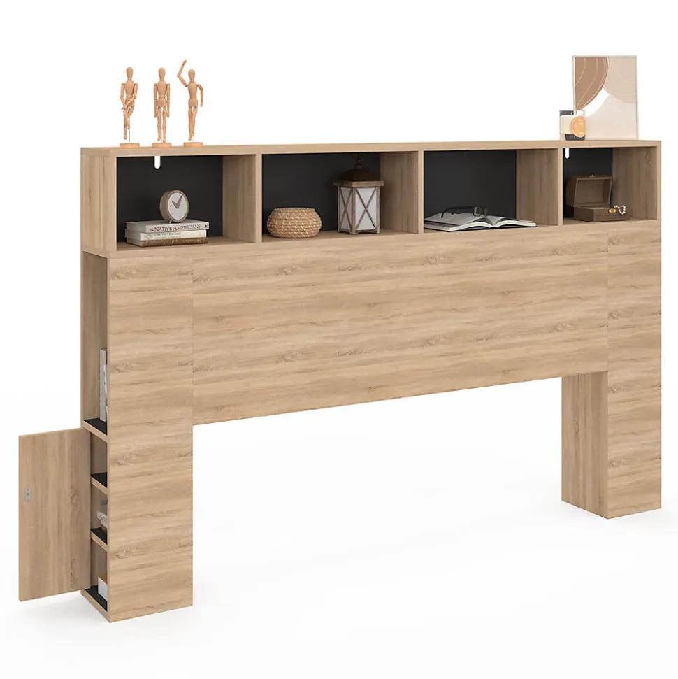 Laissez-vous séduire par cette tête de lit tendance et fonctionnelle. Elle s’intégrera facilement dans votre chambre à coucher grâce à sa jolie couleur hêtre et noir et apportera modernité et chaleur à votre espace. Fonctionnelle et discrète, vous apprécierez ses nombreux rangements qui vous permettront d’entreposer vos livres, lampes de chevet, nécessaires de nuit, et toute autres décorations. Les niches latérales, en partie fermées par une porte pression, vous permettront également un rangement discret et optimal. Le contraste entre le hêtre et le noir apportera une touche sobre et chaleureuse à votre lit. Adaptable à tous les lits 160 cm, la tête de lit CLEO 165 cm est facile à installer. Une fois montée, vous pouvez simplement poser la tête de lit à même le sol, ou bien choisir d’utiliser les fixations mises à votre disposition pour la fixer au mur. Sa structure cossue vous garantit stabilité et robustesse dans le temps pour une chambre toujours ordonnée. Envie d’une tête de lit qui allie esthétique et pratique ? Craquez pour cette tête de lit 165 cm avec rangements hêtre et noir disponible sur ID Market.Dimensions de la tête de lit 165 CM avec rangements – Dimensions globales : Longueur 165 CM x largeur 20 CM x Hauteur 105 CM- Dimensions grande niche frontale : L. 44,25 x l. 20 x H. 21 CM- Dimensions petite niche frontale : L. 34,5 x l. 20 x H. 21 CM- Dimensions niche latérale : L. 17 x l. 16,5 x H. 34,5 CM- Porte avec ouverture pression + 1 étagère intérieure- Dimensions porte : L. 16 x l. 43,5 CM- Coloris : hêtre et noir- À monter soi-mêmeCe modèle de tête de lit est disponible dans d’autres coloris et dimensions :- Tête de lit CLEO 145 CM blanc et hêtre- Tête de lit CLEO 165 CM blanc et hêtre