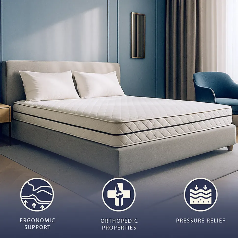 MATELAS MEMORY WATERFOAM AVEC NUCLEUS À RESSORTS ENSACHÉS.Le matelas est conçu avec une structure interne en Memory Waterfoam hypoallergénique de dernière génération, une mousse haute résilience et très respirante. Grâce à sa composition à cellules ouvertes, il assure une excellente circulation de l’air et un confort thermique optimal. Le noyau à ressorts ensachés intégré augmente le soutien et la réactivité du matelas, combinant la douceur du Memory Foam avec le soutien élastique des ressorts. Le résultat est un soutien ergonomique qui s’adapte parfaitement au corps à chaque phase du repos.MATELAS ERGONOMIQUE.La combinaison de Memory Waterfoam haute résilience et du noyau à ressorts ensachés rend le matelas très ergonomique, s’adaptant aux formes du corps et favorisant l’alignement correct de la colonne vertébrale. La fermeté équilibrée est idéale pour ceux qui ont besoin d’un soutien ferme pendant le sommeil, réduisant les points de pression et améliorant la qualité du repos. Confort et maintien durables se combinent pour offrir une expérience de sommeil supérieure.UN MATELAS POUR TOUTES LES BESOINS.Disponible avec une hauteur de 24 cm, ce matelas s’adapte à tous les besoins de repos. Le noyau innovant à ressorts ensachés offre un soutien supérieur, le rendant parfait pour B&B, hôtels, chambres d’enfants et habitations privées. Le matelas combine confort, soutien et durabilité, offrant une expérience de sommeil optimale quel que soit l’espace disponible.MATÉRIAUX CERTIFIÉS.Fabriqué à partir de matériaux certifiés et sûrs, le matelas à ressorts ensachés garantit un environnement de sommeil hypoallergénique, antibactérien et très respirant. La housse en tissu stretch de haute qualité assure fraîcheur, hygiène et douceur pour la peau tout en restant résistante à l’usure. Chaque composant est conçu pour offrir sécurité et qualité supérieure pour le repos quotidien.