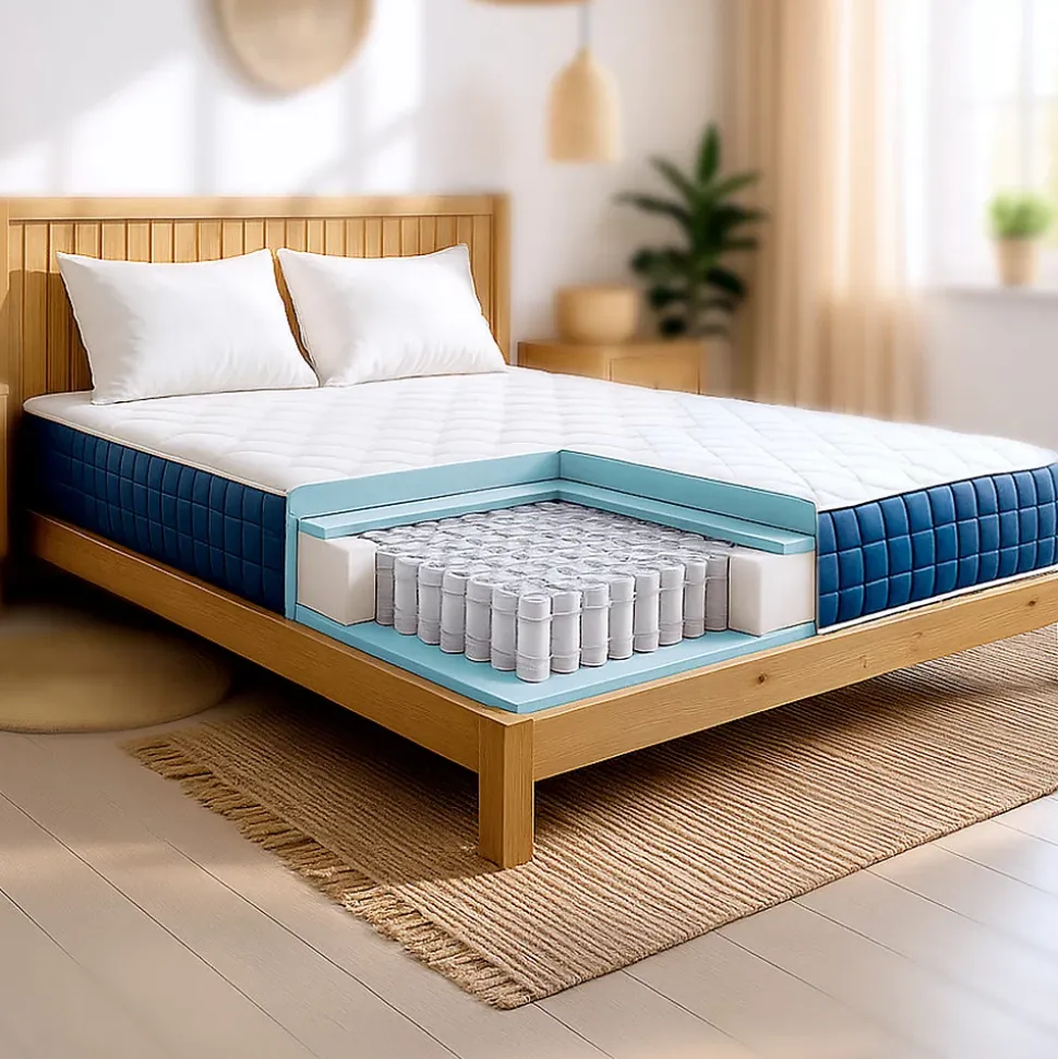 - MATELAS MEMORY FOAM ET RESSORTS ENSACHÉS – 30 CM – Ce matelas combine des ressorts ensachés indépendants et du Memory Foam à 9 zones pour un soutien ergonomique et un confort personnalisé. Réduit les points de pression et maintient la colonne vertébrale alignée, idéal pour un sommeil régénérant.La structure respirante et les matériaux hypoallergéniques garantissent fraîcheur et hygiène, en empêchant la formation de moisissures, bactéries et acariens. Entièrement fabriqué en Italie, avec des poignées latérales pour un transport et une rotation faciles.Assure un soutien sûr et une qualité certifiée. Expédié roulé et sous vide, non déhoussable mais facile à nettoyer avec un chiffon humide.