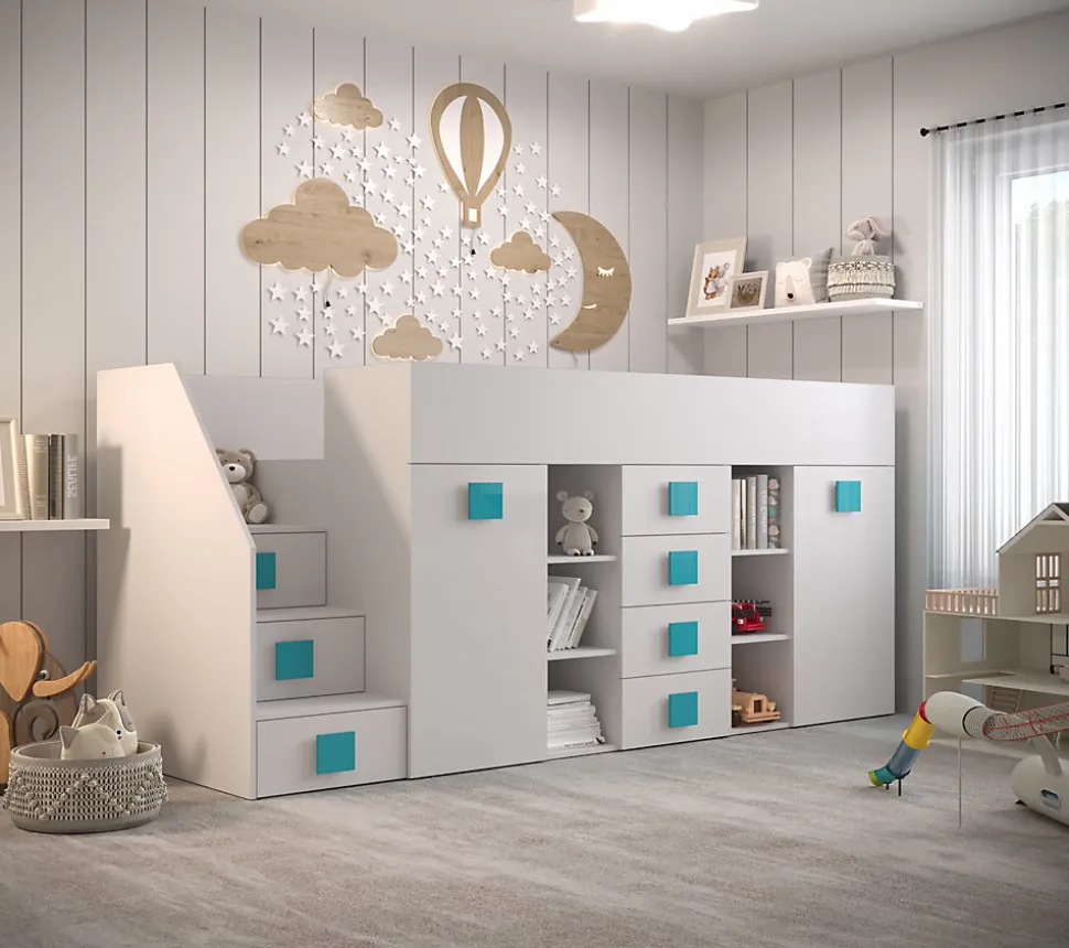 - TOLEDO 3L Lit superposé 248,5/123/93 (blanc/blanc/turquoise)
