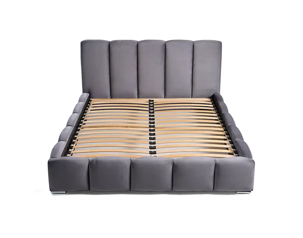 Description technique Style : ContemporainFabrication : EuropéenneType lit : Lit coffreNombre de places : 2Coffre de rangement : OuiStructure : Bois et panneaux de particulesEssence de bois : PinTête de lit : Mousse polyuréthane de densité 25kg/m3Revêtement en velours 100% polyesterSommier à lattes inclusPieds en métal chroméA assembler soi-même, notice de montage fournieDimensions :Largeur : 160 cmHauteur : 112 cmProfondeur : 222 cmHauteur d’assise : 37 cmDimensions du couchage : 140×200 cmHauteur des pieds : 4.5 cmDimensions des colisColis 1 : 120x14x170 cm / 40 kgColis 2 : 40x30x210 cm / 30 kgColis 3 : 41x19x170 cm / 18 kgColis 4 : 17x13x200 cm / 18 kgColis 5 : 14x5x49 cm / 3 kgEntretienIl est recommandé de nettoyer les salissures légères avec un chiffon légèrement humide. Terminer en essuyant avec un chiffon sec.Bon à savoirPour une meilleure stabilité, resserrez les vis deux semaines après le montage.Les couleurs des produits affichés peuvent varier en fonction de votre écran d’ordinateur ou mobile.Nous faisons de notre mieux pour représenter fidèlement les couleurs de nos produits dans nos images, mais ne pouvons garantir qu’elles soient exactement les mêmes que celles que vous voyez sur votre écran.N’hésitez pas à nous contacter, nous sommes là pour vous aider à prendre une décision d’achat éclairée.Un lit coffre authentiquePar son style singulier, le lit coffre Torreon 140×200 cm apportera une ambiance cosy à votre chambre. Ce lit vous séduira par son design authentique et arrondi et son revêtement en velours tout doux. Il est également un véritable atout pour optimiser votre espace grâce à son grand coffre de rangement situé sous son sommier relevable. Il est également