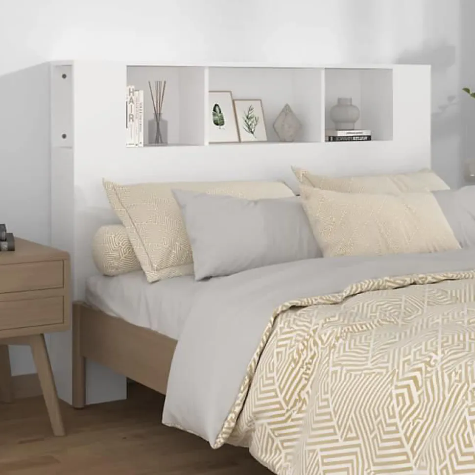 Cette armoire de tête de lit en blanc allie un design contemporain à une fonctionnalité pratique. Conçue en bois d’ingénierie, elle est robuste et durable. Dimensions 140 x 18,5 x 104,5 cm. Offre un espace de rangement idéal avec cinq compartiments. Facile à installer avec le dispositif de fixation murale fourni.