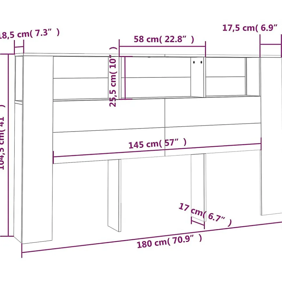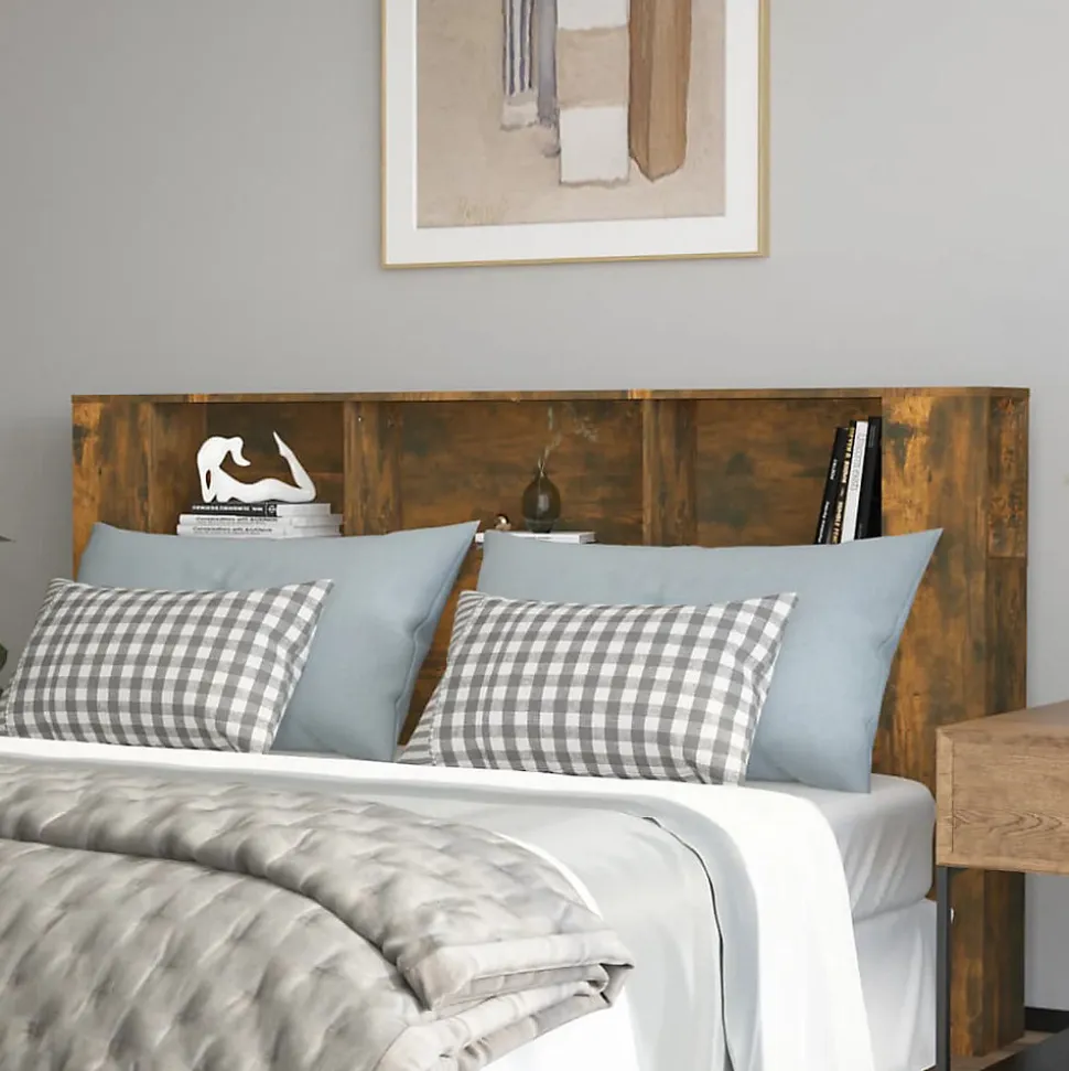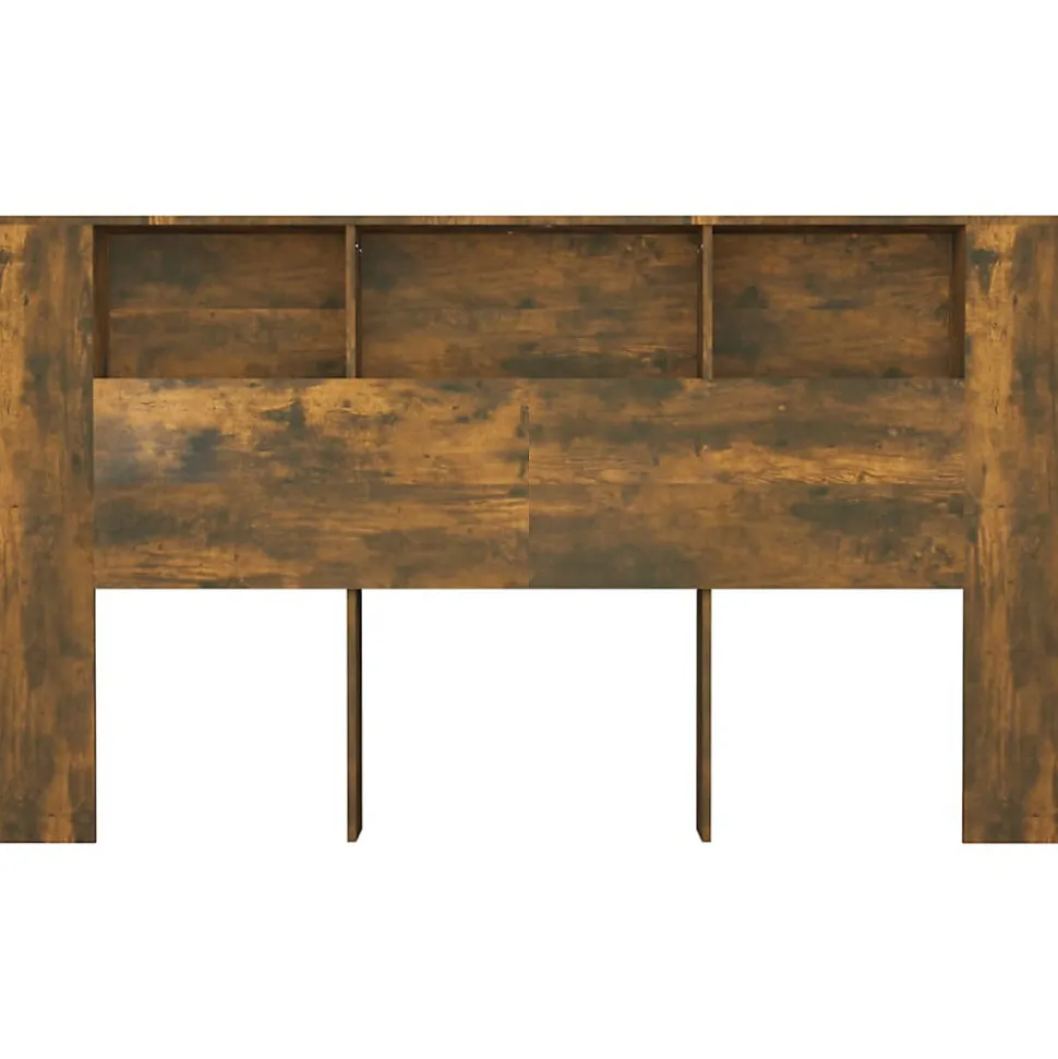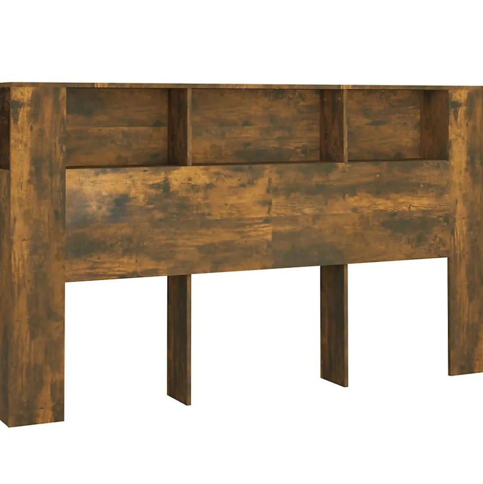 Tête de lit chêne fumé en bois d’ingénierie 180 x 18,5 x 104,5 cm avec 3 compartiments de rangement, fixation murale fournie. Style scandinave contemporain, meuble en kit.