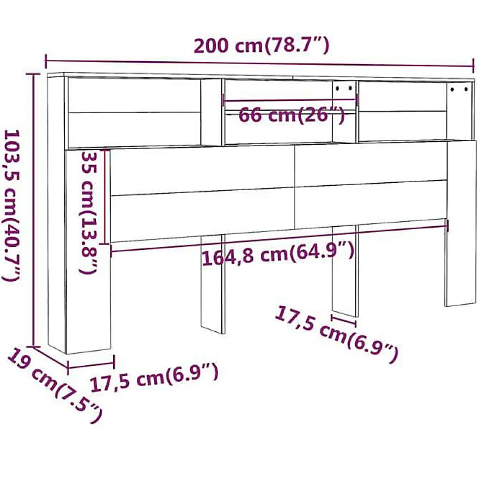 Armoire de tête de lit blanche 200 x 19 x 103,5 cm en bois d’ingénierie. Offre 4 compartiments de rangement et nécessite un assemblage. Dispositif de fixation murale inclus pour éviter le basculement. Design moderne et polyvalent, adaptée à divers styles d’intérieur.