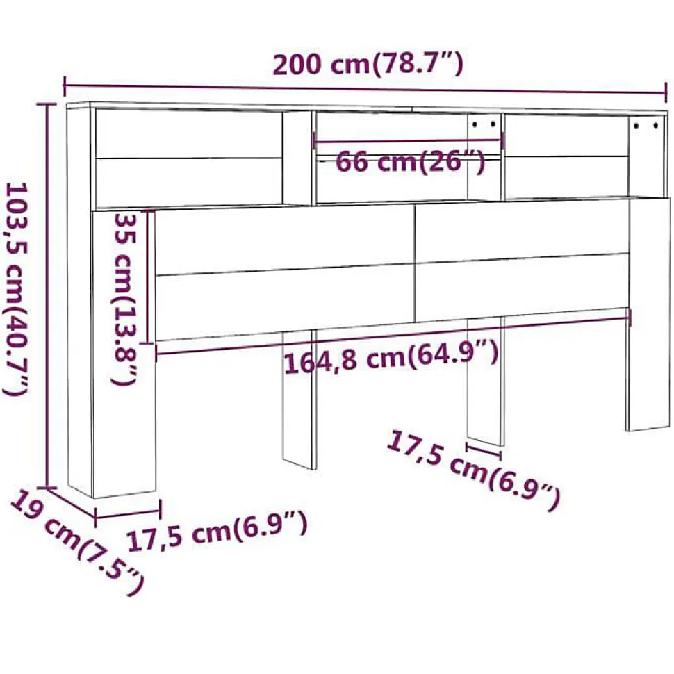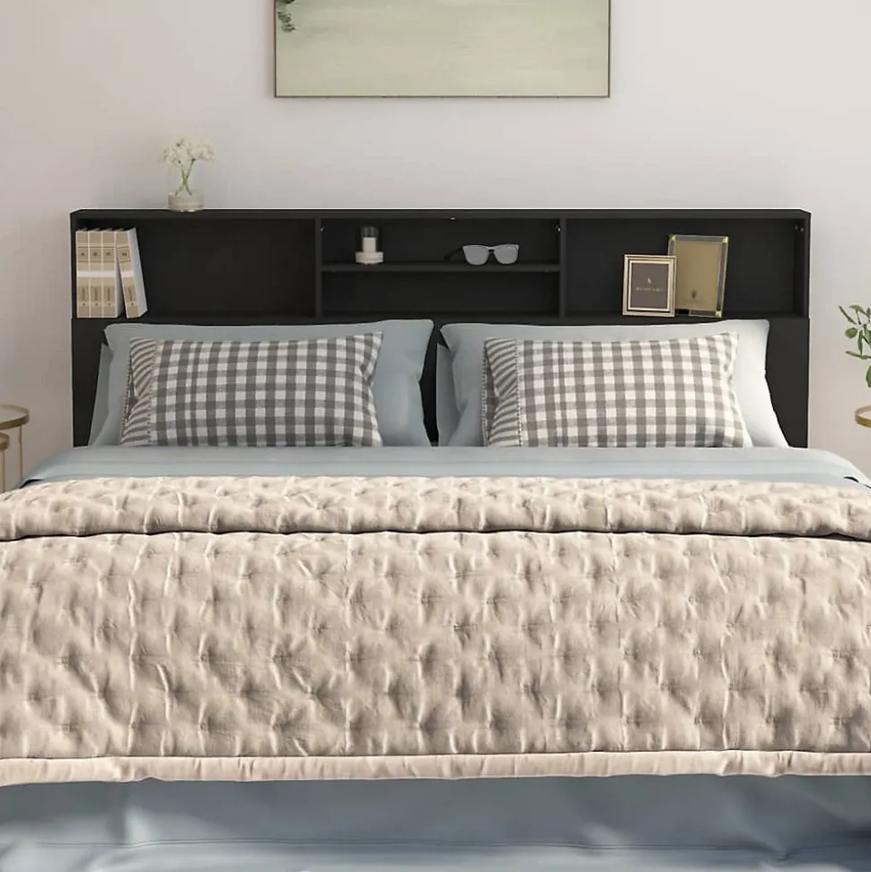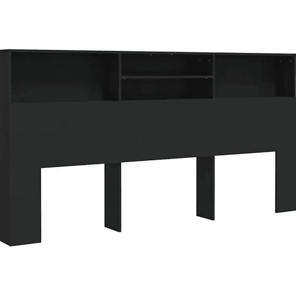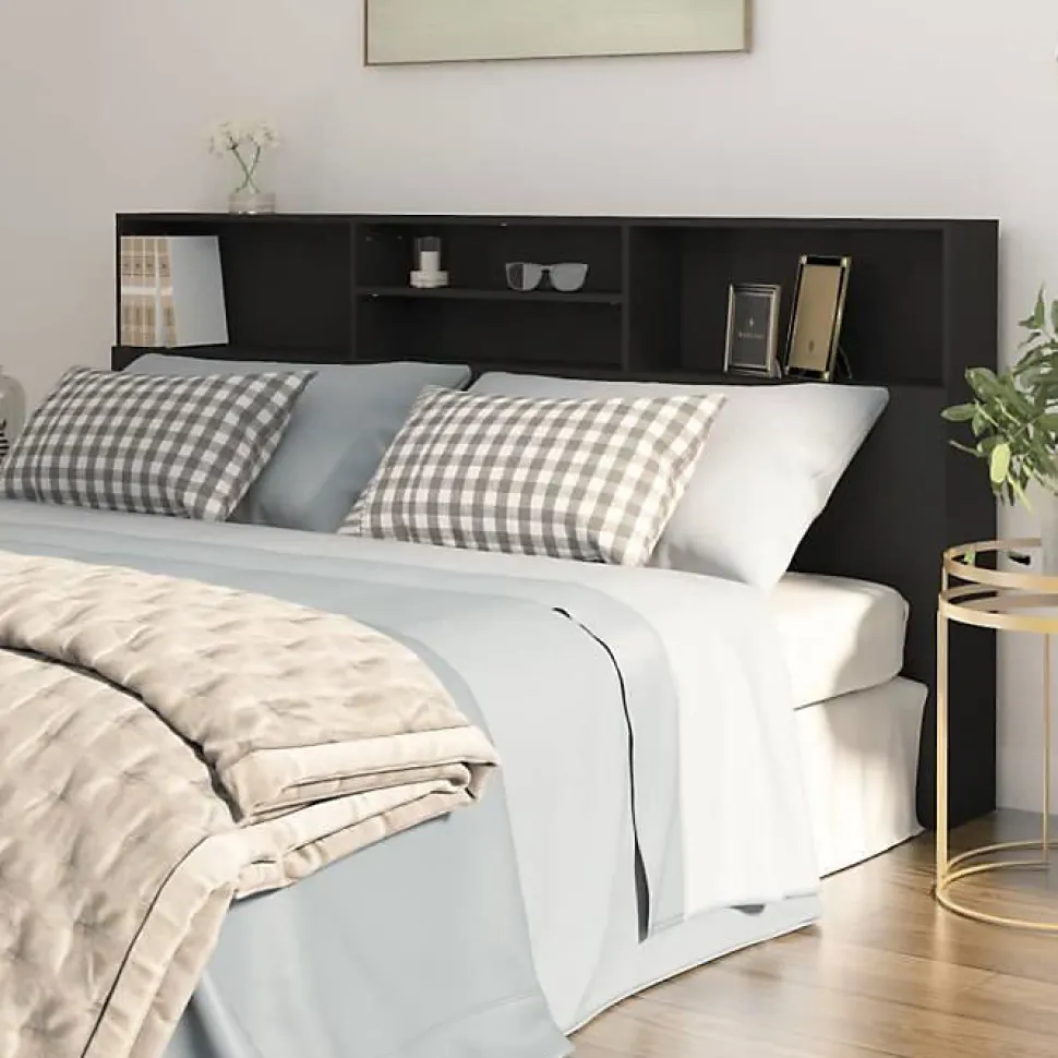 Armoire de tête de lit noire 200x19x103,5 cm en bois d’ingénierie durable, idéale pour ranger livres, lampes et accessoires personnels. Finition moderne et facile à intégrer.