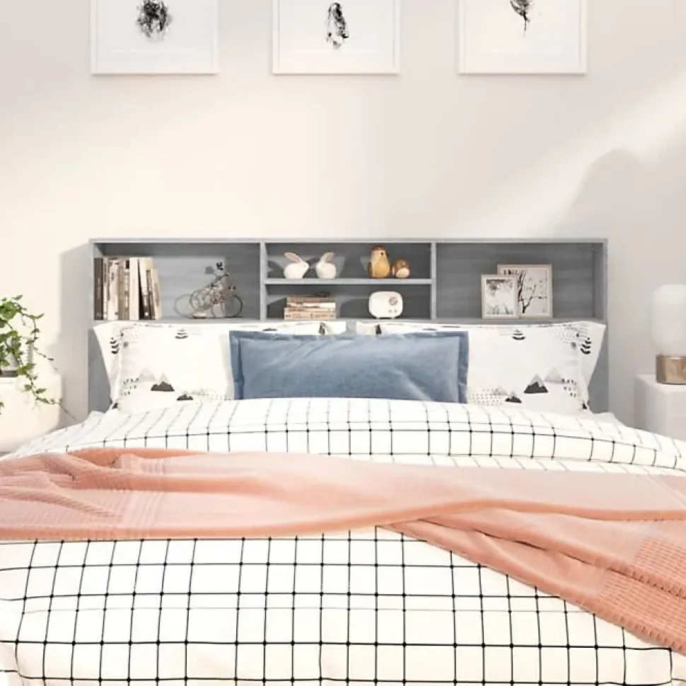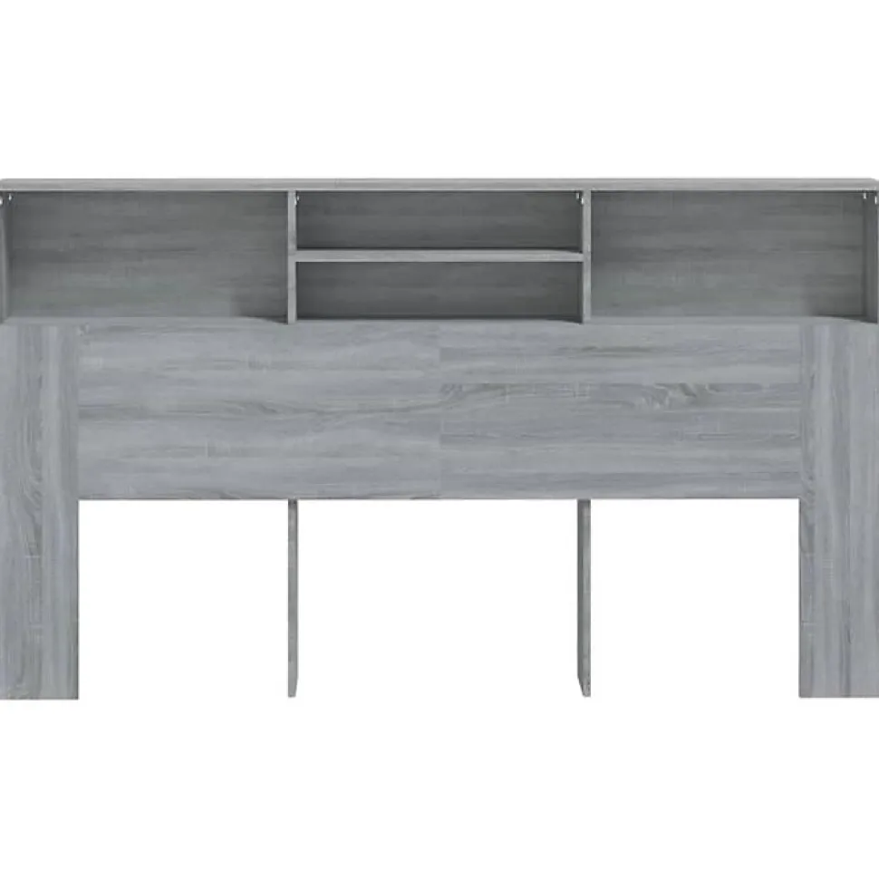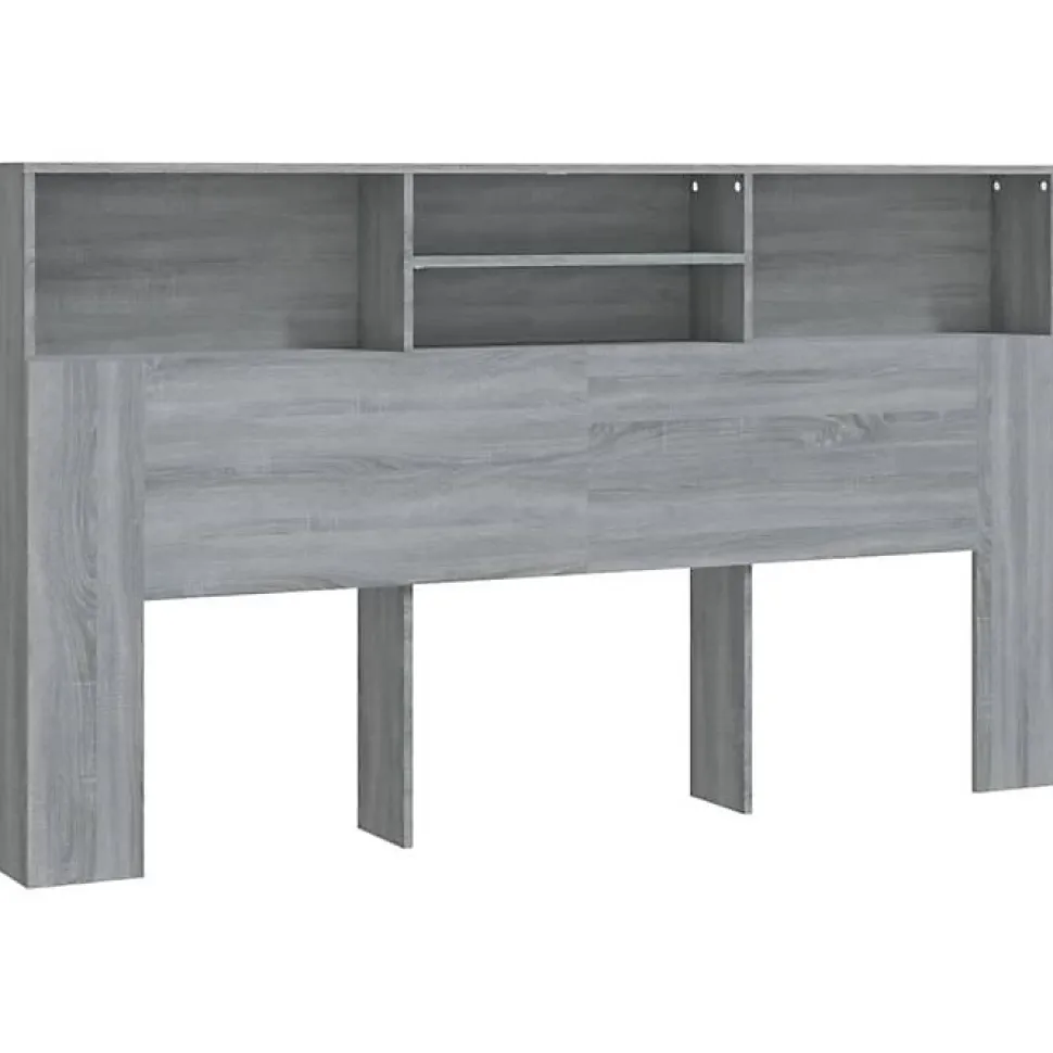 Armoire de tête de lit Sonoma gris en bois d’ingénierie, dimensions 180 x 19 x 103,5 cm. Avec quatre compartiments pour rangement, design contemporain et montage facile. Fournie avec fixation murale pour plus de sécurité.