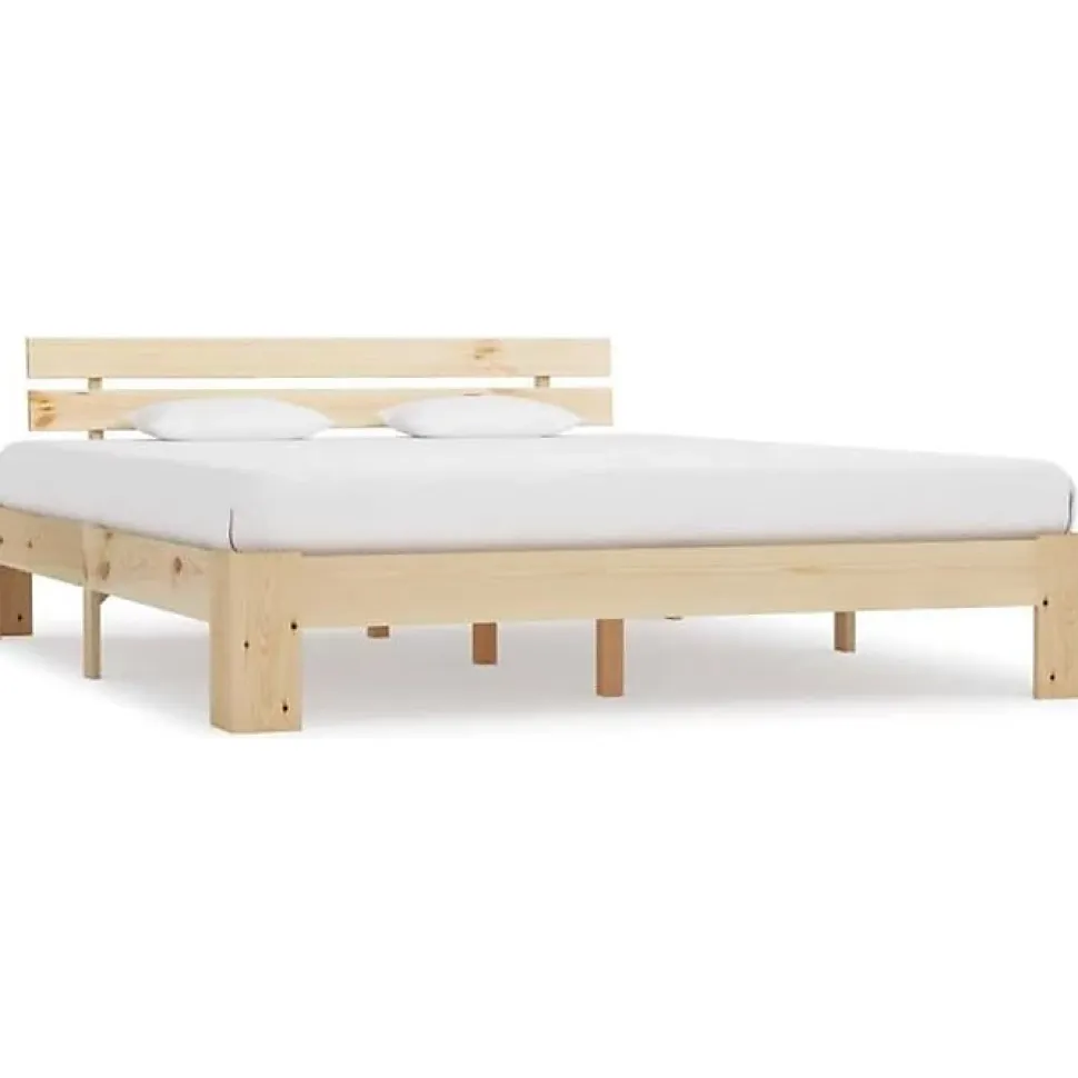 Cadre de lit robuste et stable en bois de pin massif avec lattes en contreplaqué pour un soutien optimal. Pieds massifs pour une stabilité et une sécurité accrues. Finition naturelle et design épuré, dimensions adaptées pour matelas 160×200 cm.