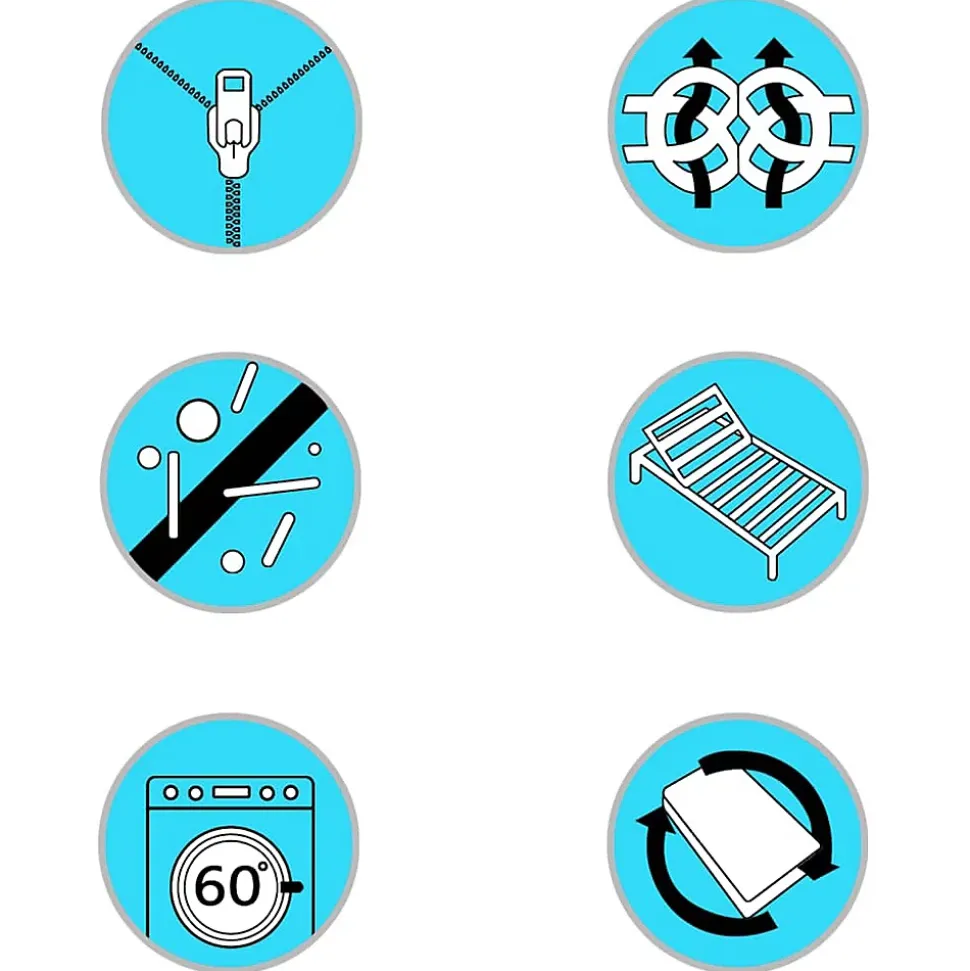 Avec notre matelas 7 zones de dureté H2/H3 pour vos invités, vous pouvez accueillir et traiter vos invités avec une bonne nuit de sommeil. Le matelas 7 zones offre un soutien inégalé pour tout le corps, avec un soutien doux pour les épaules et un soutien ferme pour les hanches et le bas du dos, assurant un sommeil plus sain. Fabriqué en mousse PU D25, il favorise la circulation de l’air et maintient une température confortable pendant le sommeil. Dimensions totales : 120 x 200 x 10 cm (L x l x h).