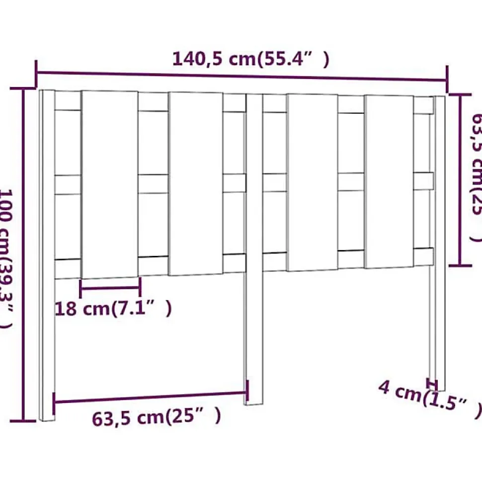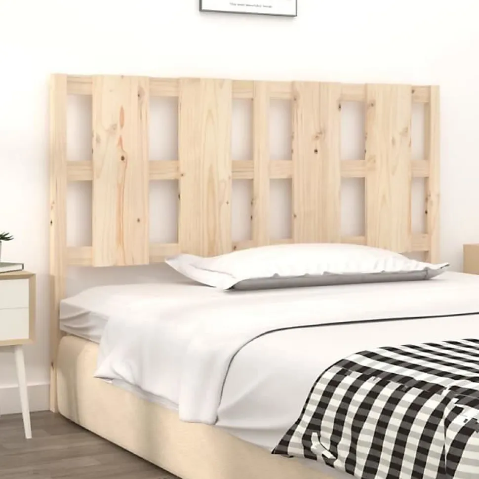 Tête de lit en bois de pin massif non traité au style rustique. Dimensions 140,5 x 4 x 100 cm. Montage requis. Offre un soutien dorsal confortable et un aspect naturel chaleureux.