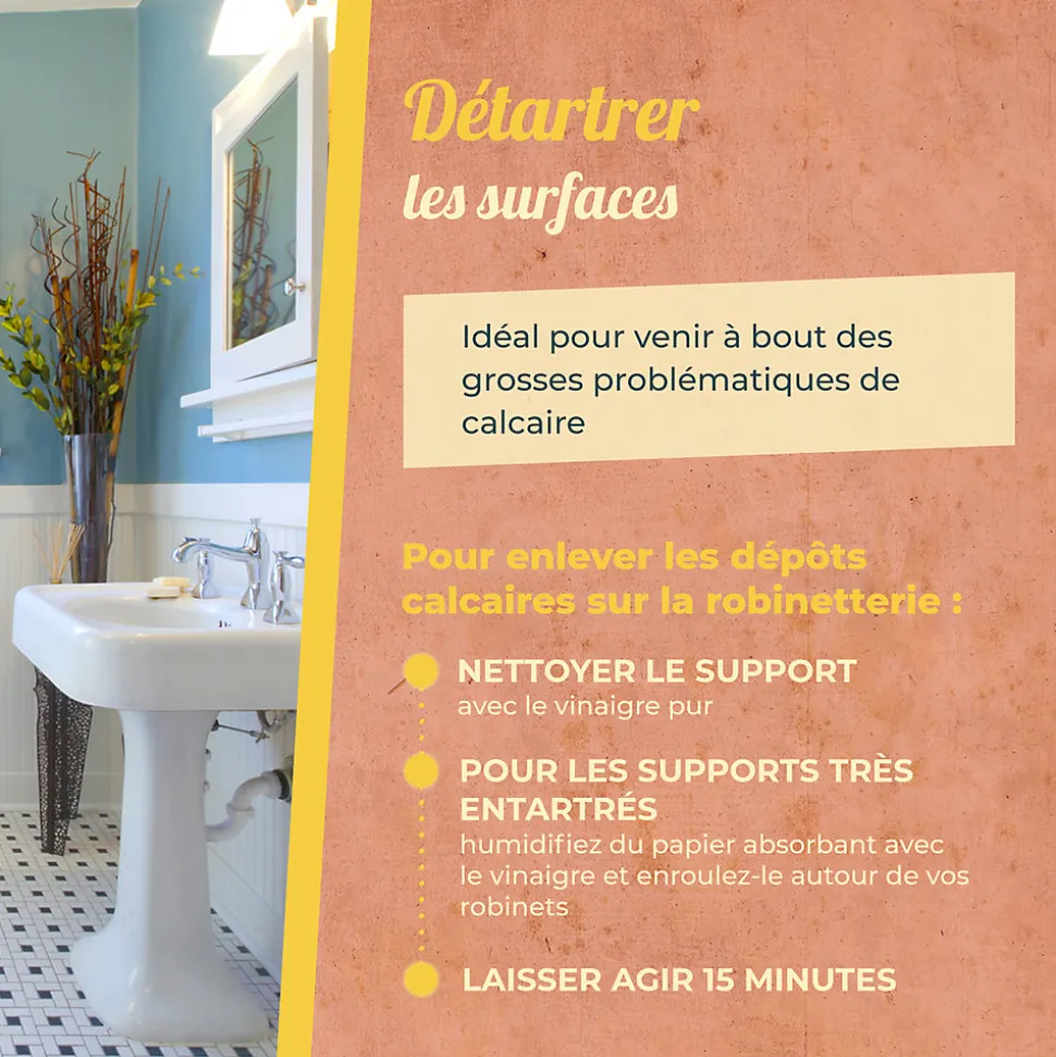 - Son dosage en acidité acétique, le plus élevé du marché, lui confère une efficacité détartrante surpuissante.