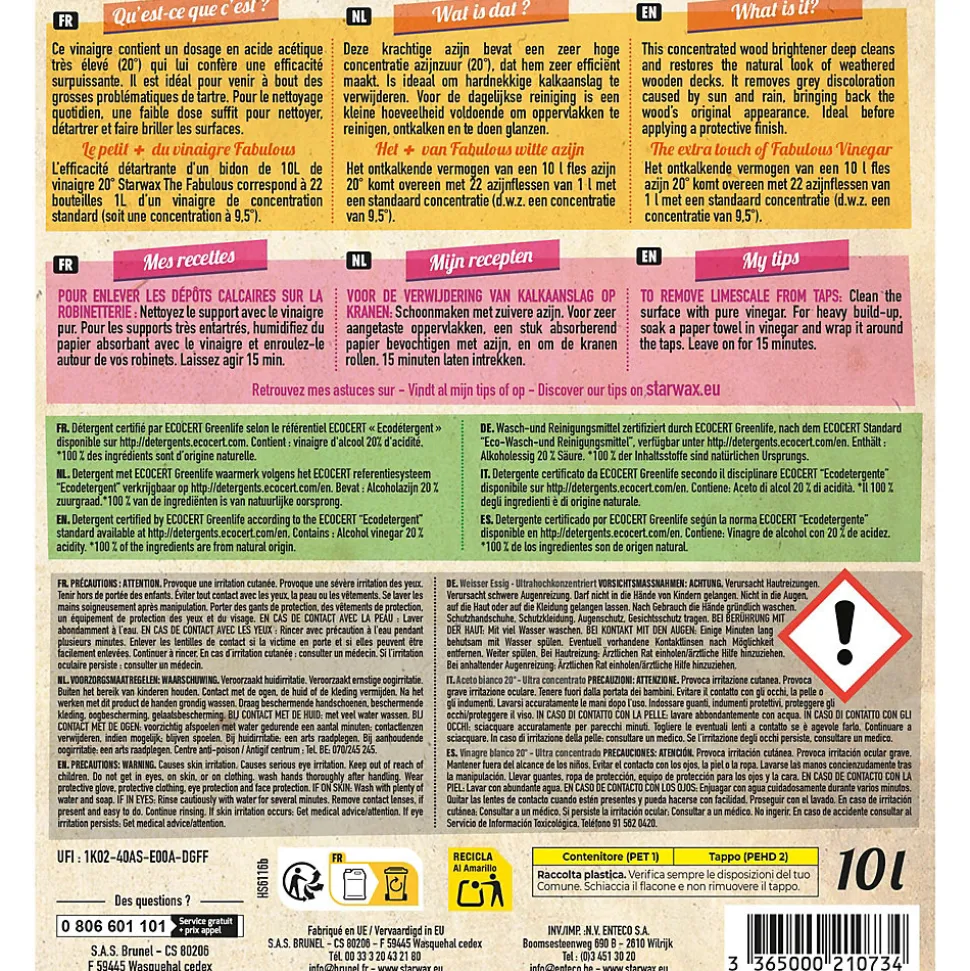 Vinaigre blanc 20° ultra haute concentration Starwax The fabulous 10L