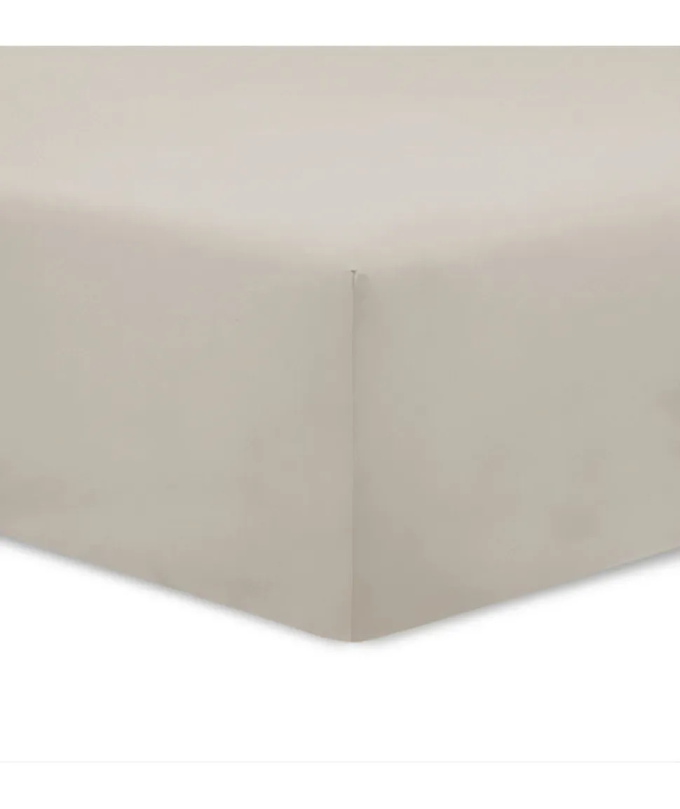 Drap housse – Composition : 100% coton – Dimensions : 140×190 cm – Tissage serré : 57 fils/cm² – Coloris : Mastic – Teinture réactive – Bonnets de 25 cm – Excellente résistance des couleurs au lavage – Certifié oekotex