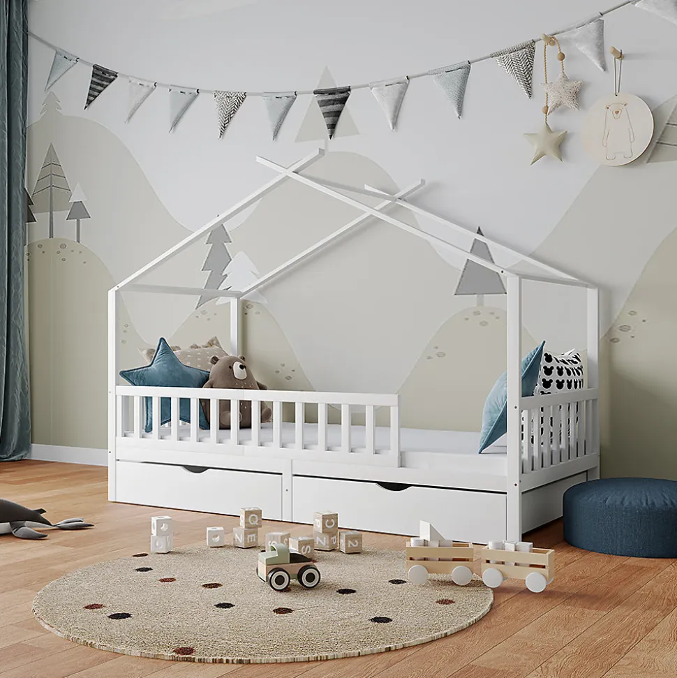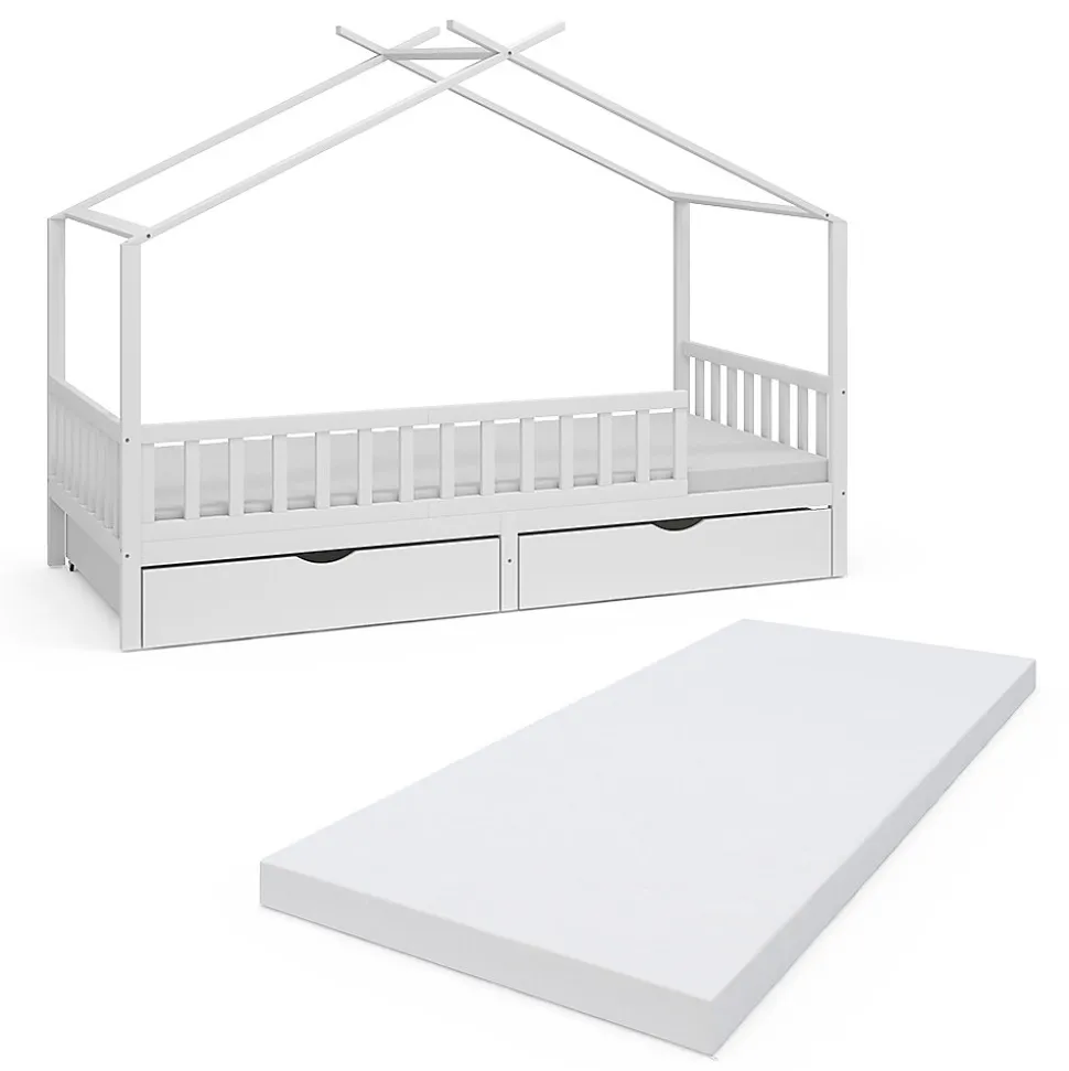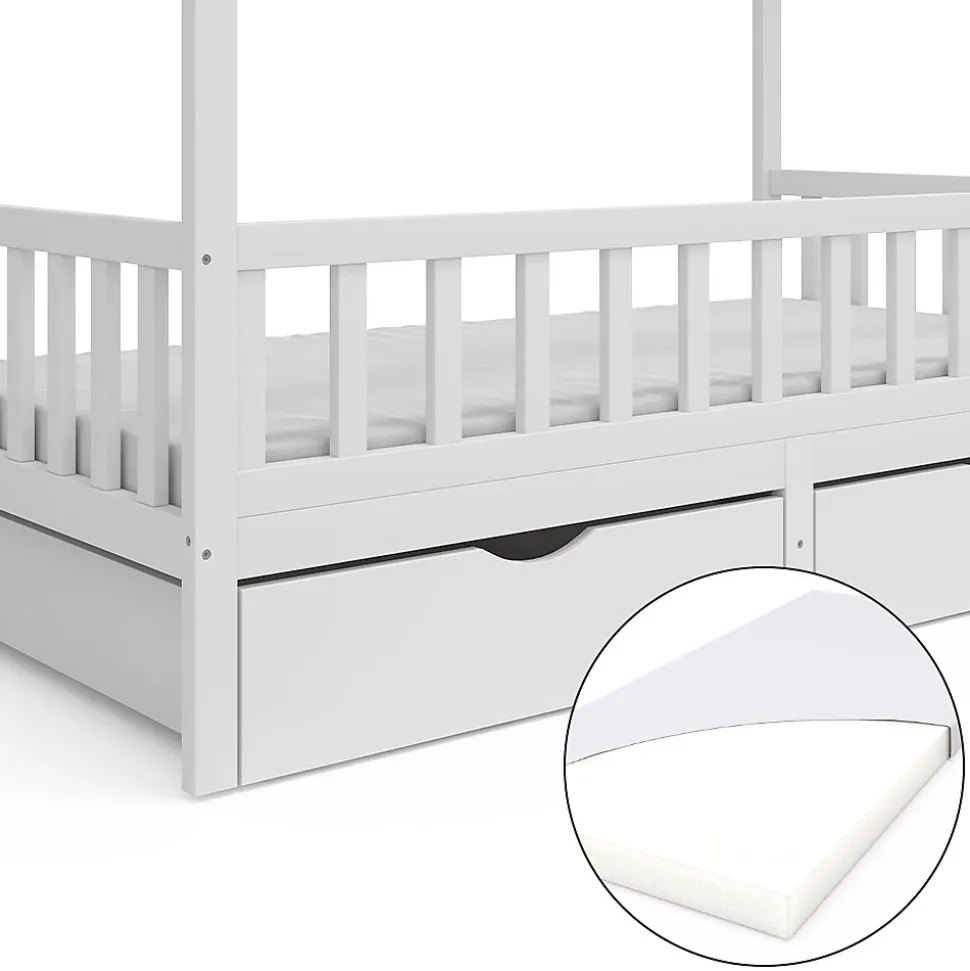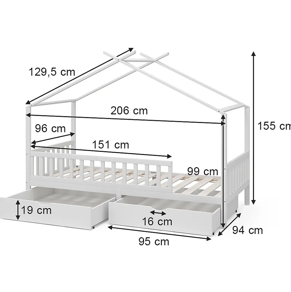 Le lit denfant Livinity Franka en blanc offre un espace de rangement supplémentaire pour la chambre denfant grâce à ses 2 tiroirs.Grâce au design de la maison de lit, vous pouvez personnaliser le lit avec des décorations ou des rideaux.DIMENSIONS : Le Lit enfant convient pour un matelas de90x200 cm et a une hauteur de 155 cm. Toutes les tailles détaillées sont indiquées sur les photos.MATÉRIAU: Le lit de la maison est constitué de bambou faciles à entretenir.CONTENU DE LA LIVRAISON: Lit de maison, 2x tiroir, Matelas, Instructions de montage, Matériel de montage.