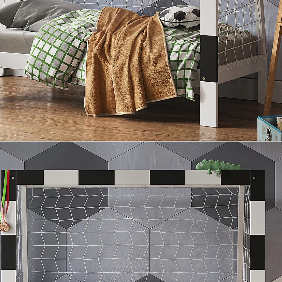 Le lit en bois « but de football » est une bonne décision pour tout petit fan de football. Son design optimal et son aspect stylé s’intègrent parfaitement dans chaque intérieur.Le lit de chambre d’enfant est compatible avec d’autres meubles et rend la chambre plus intéressante. Il dispose d’une fixation permettant d’installer facilement un filet.MATÉRIAU : le lit d’enfant est en pin mélaminé, facile à entretenir.DIMENSIONS : Le lit d’adolescent a une profondeur de 88 cm, une largeur de 178 cm et une hauteur de 142,5 cm.LIVRAISON : Lit d’enfant (sans filet), instructions de montage, matériel de montage.