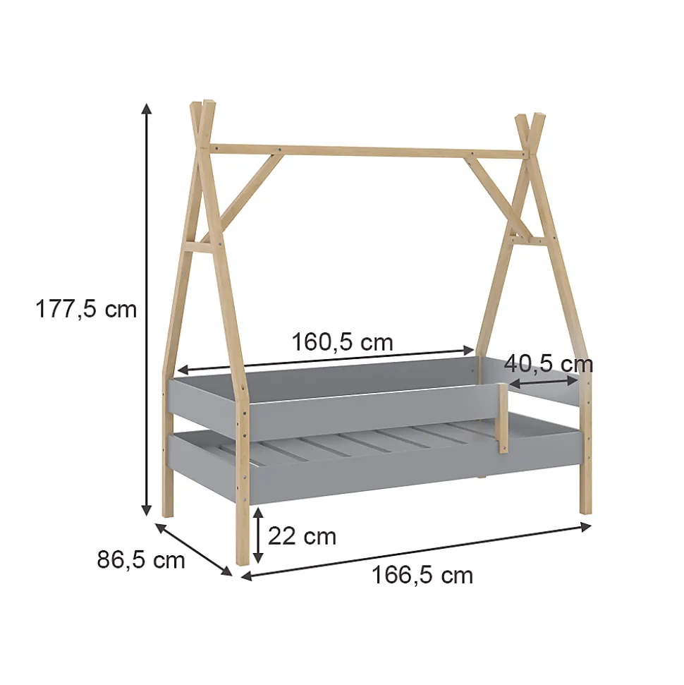 Le lit avec protection antichute « Bali » est la solution optimale pour les parents qui souhaitent offrir à leurs enfants un environnement de sommeil sûr et élégantLe lit de jeu offre aux enfants un lieu pour développer leur imagination et leur créativité. Il est un point fort dans la chambre d’enfant et convainc par sa grande qualité.DIMENSIONS : Le lit d’appoint a les dimensions suivantes : largeur : 166,5 cm, hauteur : 177,5 cm, profondeur : 86,5 cm. Toutes les dimensions détaillées sont visibles sur les photos.MATÉRIAU : le lit en bois pour la chambre d’enfant est en pin de 4×4 cm. Le pourtour est fait de panneaux de particules de 18 mm.LIVRAISON : Lit d’enfant, instructions de montage, matériel de montage (décoration non comprise).